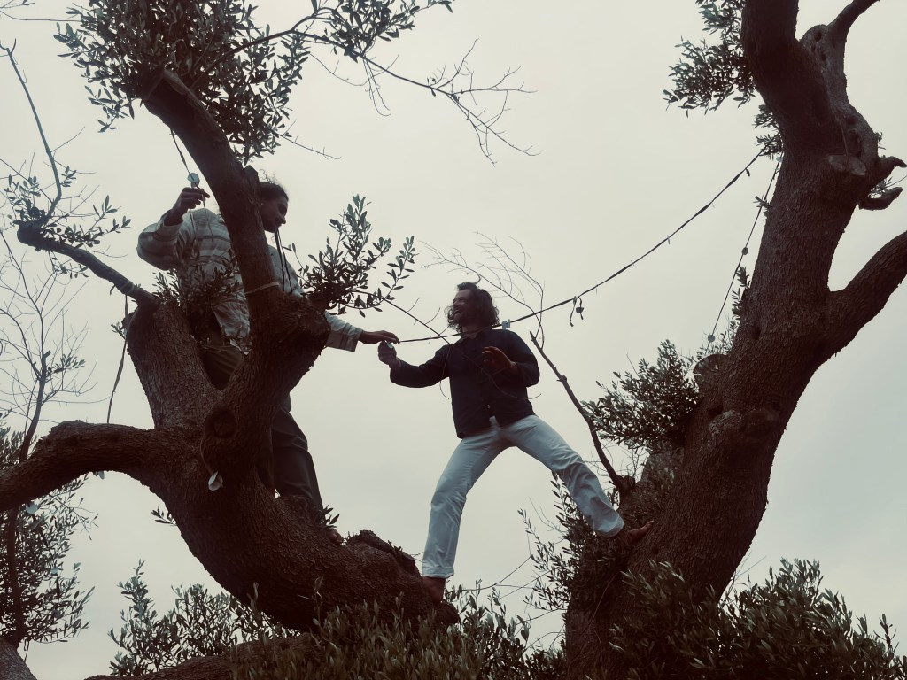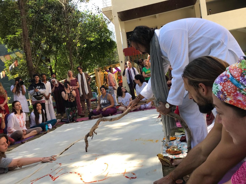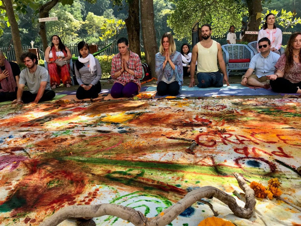 Chairs in a row create an audience. But a circle creates a community. And when the people in that circle are each holding a brush made from a branch they found themselves, painting with pigments they ground from the earth, something older than language gets activated. A memory of how humans used to create together.