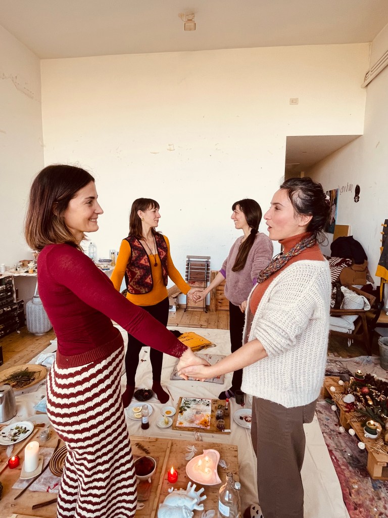 EarthPainting is, at its core, a collective practice. Of course the paintings with organic colors can be made alone (it is my deep weekly practice indeed) and it is beautiful but the circles are where the real alchemy of connection happens.