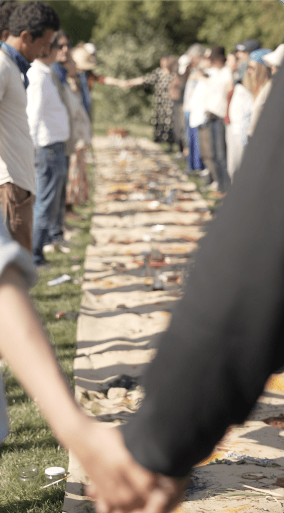 This is was the EarthPainting closing ceremony for Humus gathering, designed by Livia Firth and the Humus Board at Quinto Sapore – not just a connective grid, but as a question made visible: what happens when we stop pretending we are separate? What can be birth when we allow each other to connect with the mission of the others? What is the true power of connection in service for something greater than ourselves.
